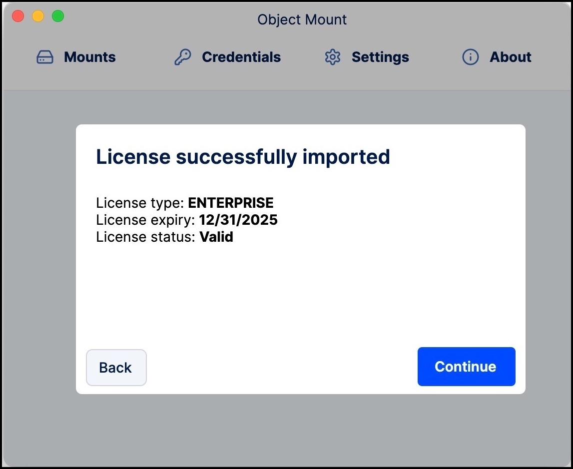 This guide walks you through the core steps to get started with Object Mount on macOS, including: activation, adding credentials, and mounting your cloud-based object storage as a local volume.