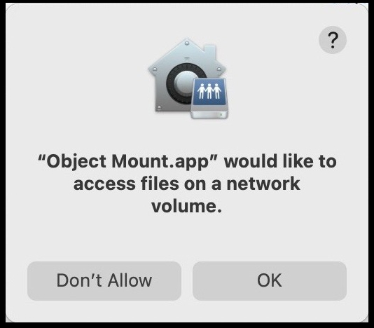 If prompted, click OK to allow Object Mount to access files on network volumes.