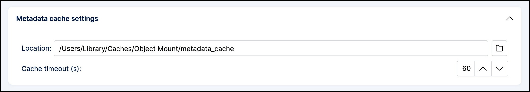 - Cache timeout: The duration, in seconds, that metadata remains valid before being refreshing from the cloud (default: 60 seconds)